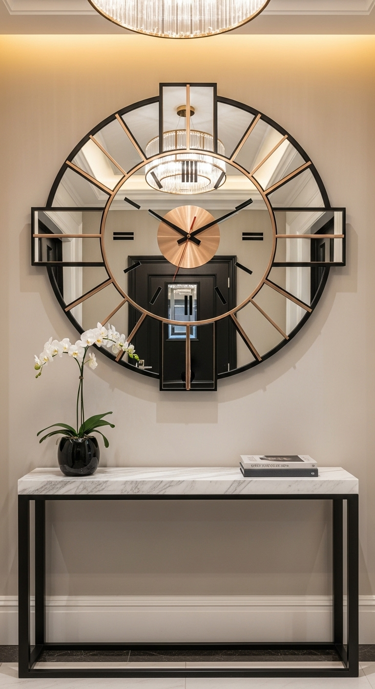 Pour Pinterest, mettez en scène cette horloge dans des contextes variés : entrée accueillante, coin makeup, ou comme élément central d’un mur galerie luxueux. Son caractère hybride plaira aux audiences qui recherchent l’équilibre entre fonctionnalité et esthétique raffinée.