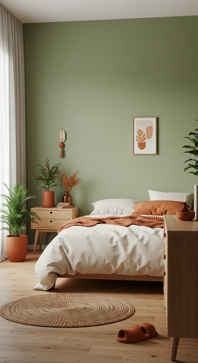 Une palette inspirée de la nature crée instantanément une atmosphère apaisante. Les tons terreux et les verts doux évoquent la forêt, les champs et la tranquillité naturelle.