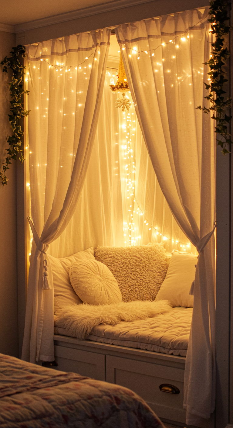 3. Alcôve Cosy avec Rideaux et Guirlandes
