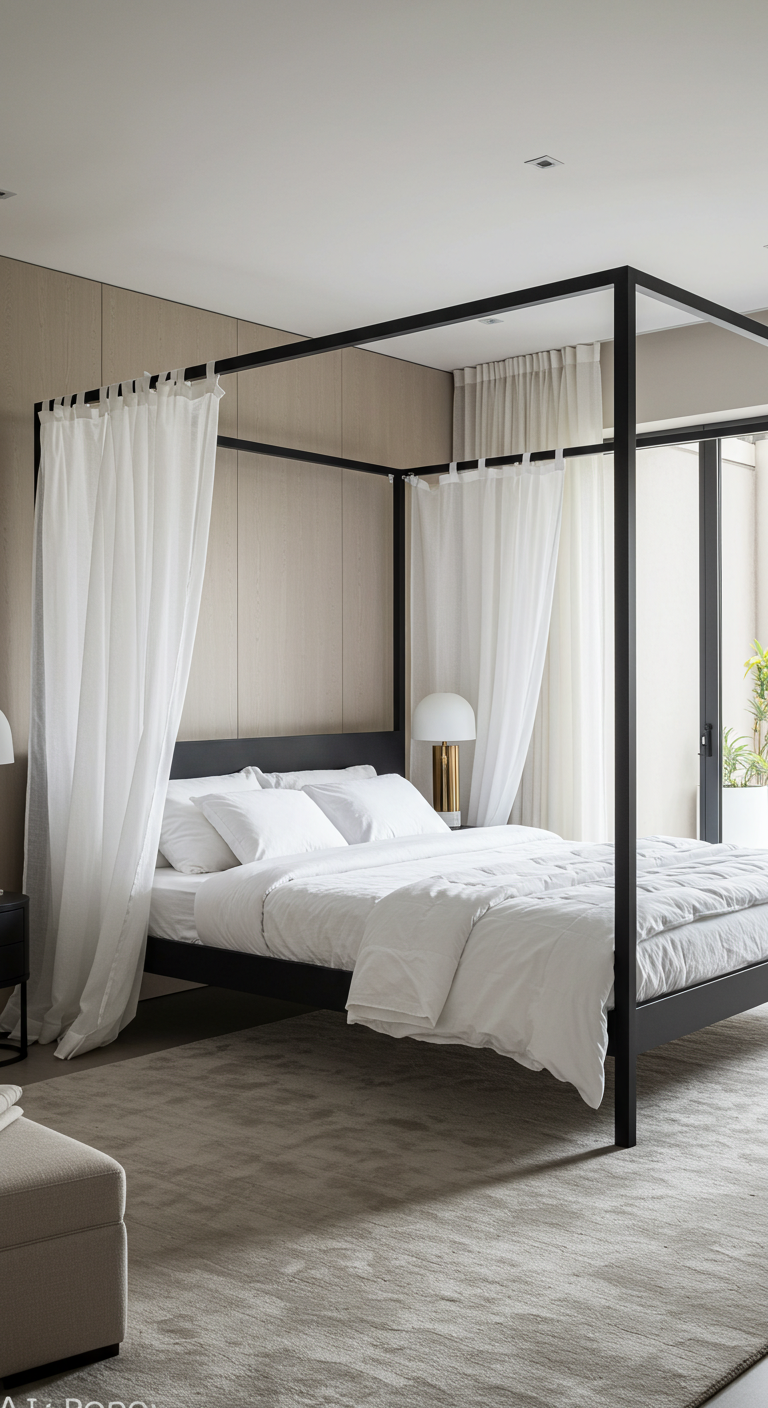 5. Lit Baldaquin Moderne avec Voilages Transparents