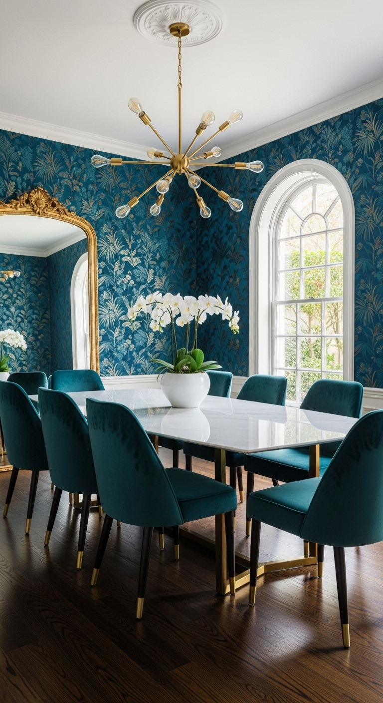 12. La Salle à Manger Élégante Bleu Canard