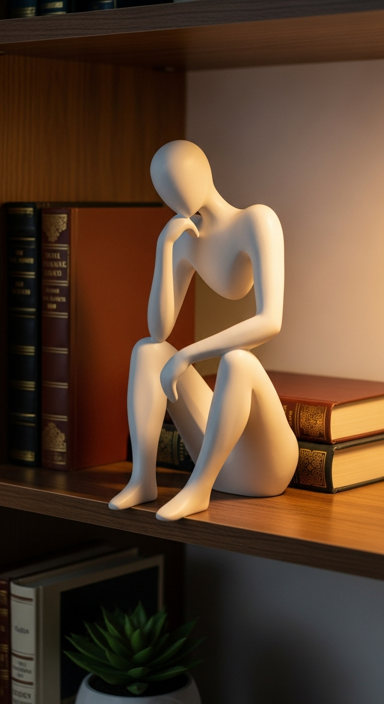 Le penseur abstrait s’harmonise parfaitement avec un décor intellectuel et raffiné : bibliothèque en bois foncé, fauteuil en cuir vintage, lampe de bureau en laiton. Il apporte également une touche d’humanité chaleureuse dans les espaces trop épurés, rappelant que le minimalisme ne signifie pas absence d’émotion. Cette pièce convient particulièrement aux personnes qui valorisent la réflexion, la créativité et la croissance personnelle.