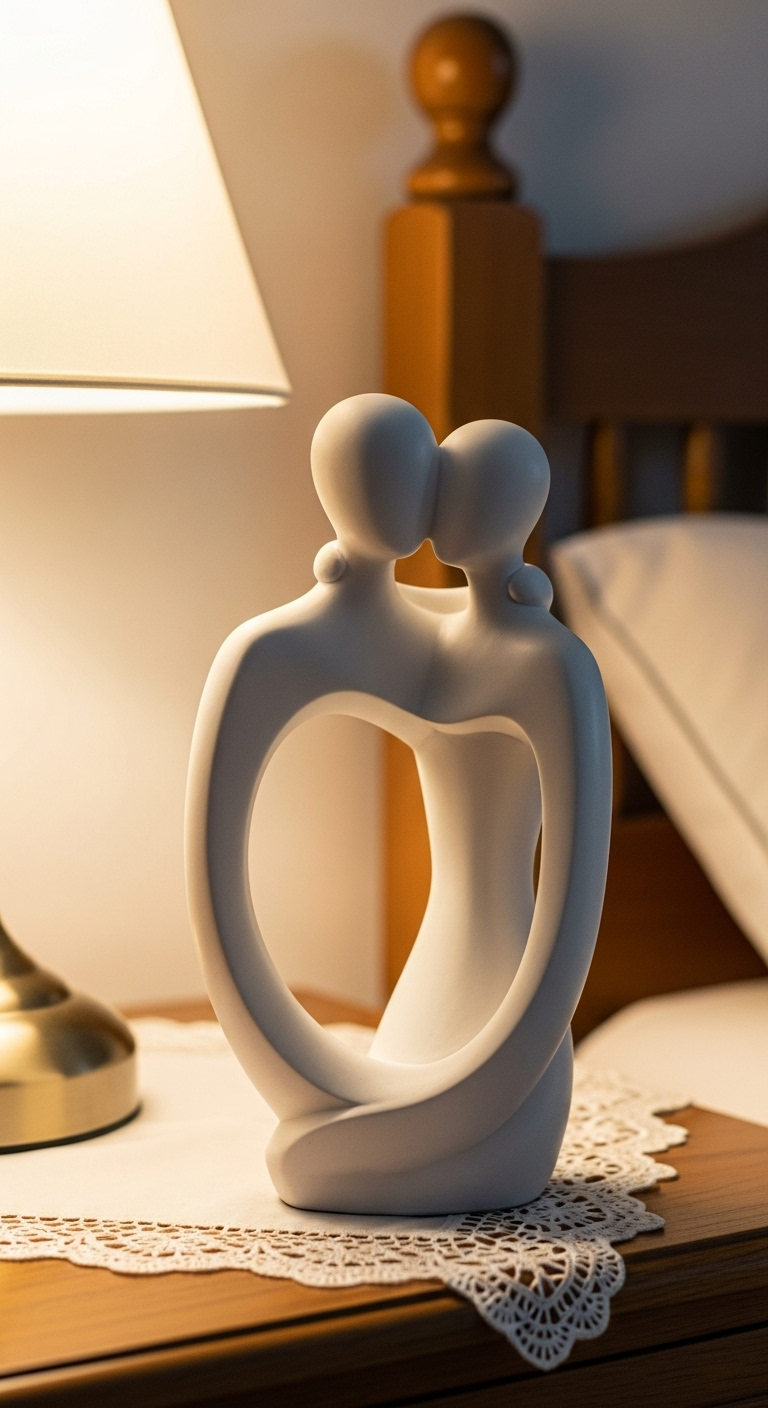 Cette sculpture apporte une dimension émotionnelle profonde tout en maintenant l’esthétique épurée du minimalisme. Elle est idéale pour une chambre à coucher où elle symbolise l’harmonie du couple, ou comme cadeau de mariage significatif qui transcende les clichés décoratifs habituels. Sur une commode ou une table de chevet, elle crée un rappel quotidien de l’importance des liens affectifs.