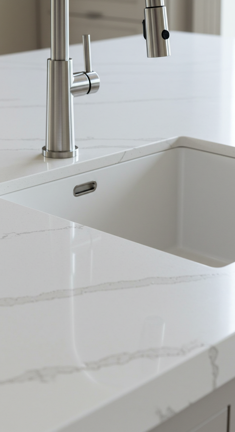 4. Plan de Travail en Quartz Blanc Immaculé