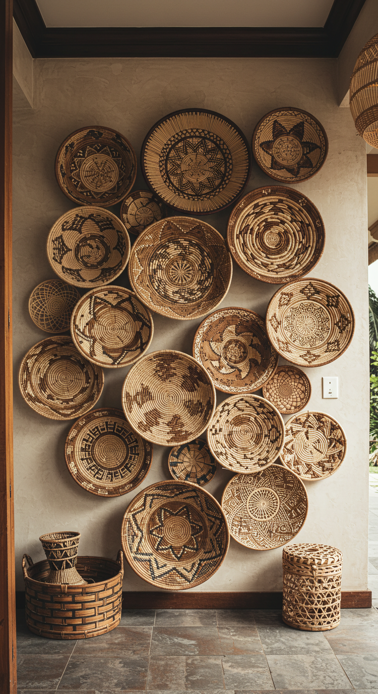 Les paniers tressés muraux apportent texture et dimension à votre mur d’entrée. Cette collection ethnique crée un impact visuel fort tout en célébrant l’artisanat traditionnel.