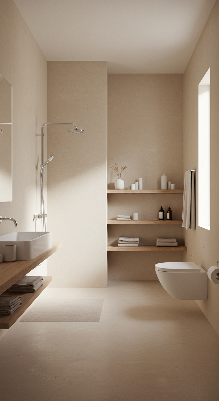La base d’une salle de bain zen réussie commence par le choix des couleurs. Optez pour une palette neutre composée de blancs purs, de beiges chaleureux, de gris doux et de tons terre naturels. Ces couleurs créent instantanément une atmosphère apaisante et intemporelle.