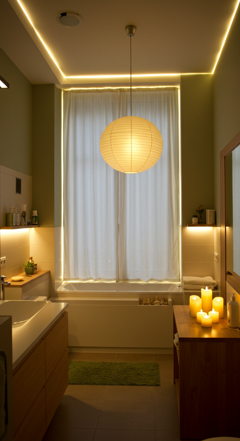 Évitez les éclairages directs et agressifs au profit de lumières indirectes et tamisées. Les bandeaux LED cachés, les suspensions en papier de riz, ou encore les bougies créent une atmosphère feutrée propice à la détente.
