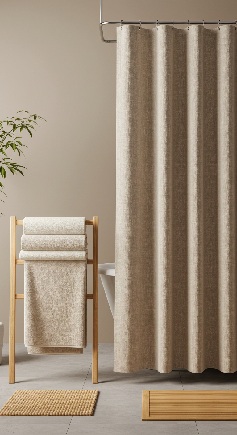 Les serviettes en coton épais, les tapis de bain en bambou et les rideaux de douche en lin créent une ambiance cosy tout en respectant l’esthétique épurée. Évitez les motifs complexes au profit de textures naturelles.