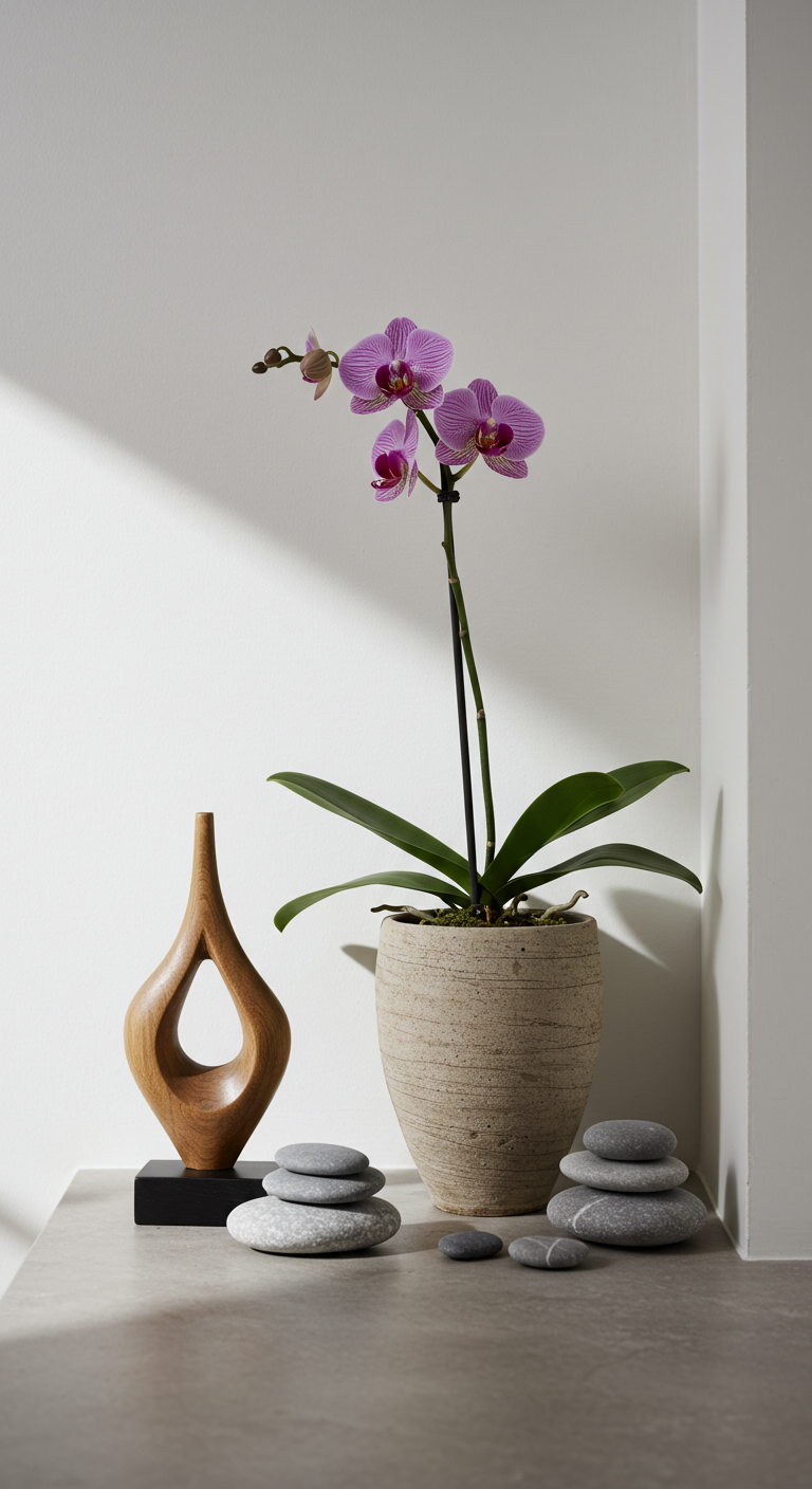 Une orchidée blanche, quelques galets lisses, un bol en céramique artisanale ou une sculpture en bois flotté suffisent à personnaliser l’espace. Chaque élément doit avoir sa raison d’être et contribuer à l’harmonie générale.