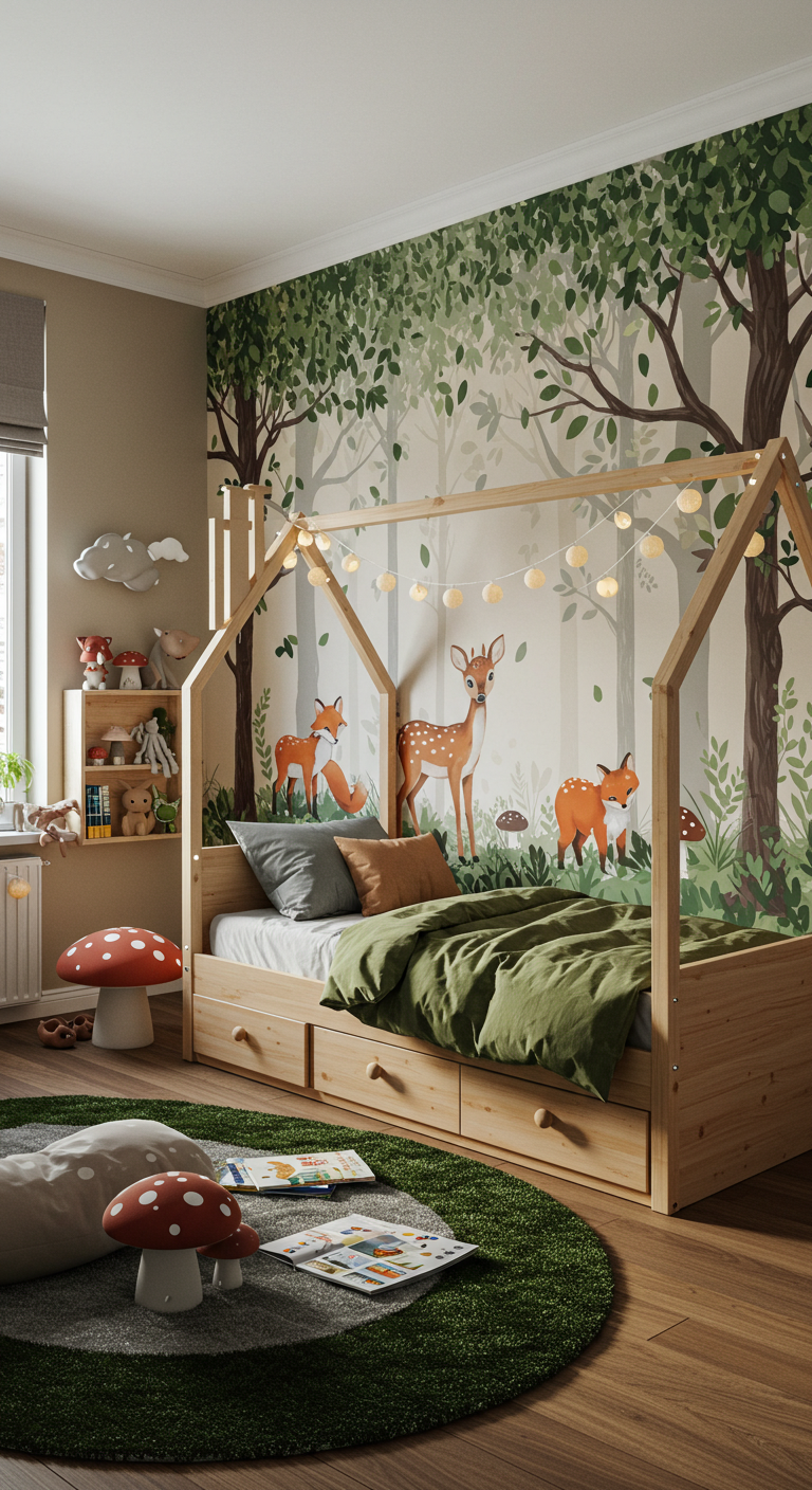 Cette décoration développe l’amour de la nature et crée un cocon rassurant pour l’endormissement.