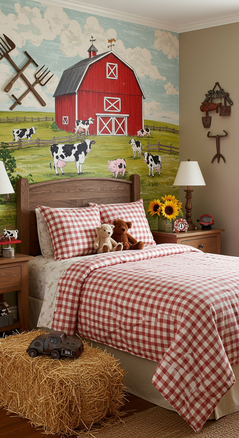 Apportez la joie de la campagne dans la chambre avec cette thématique ferme pleine de charme rustique.