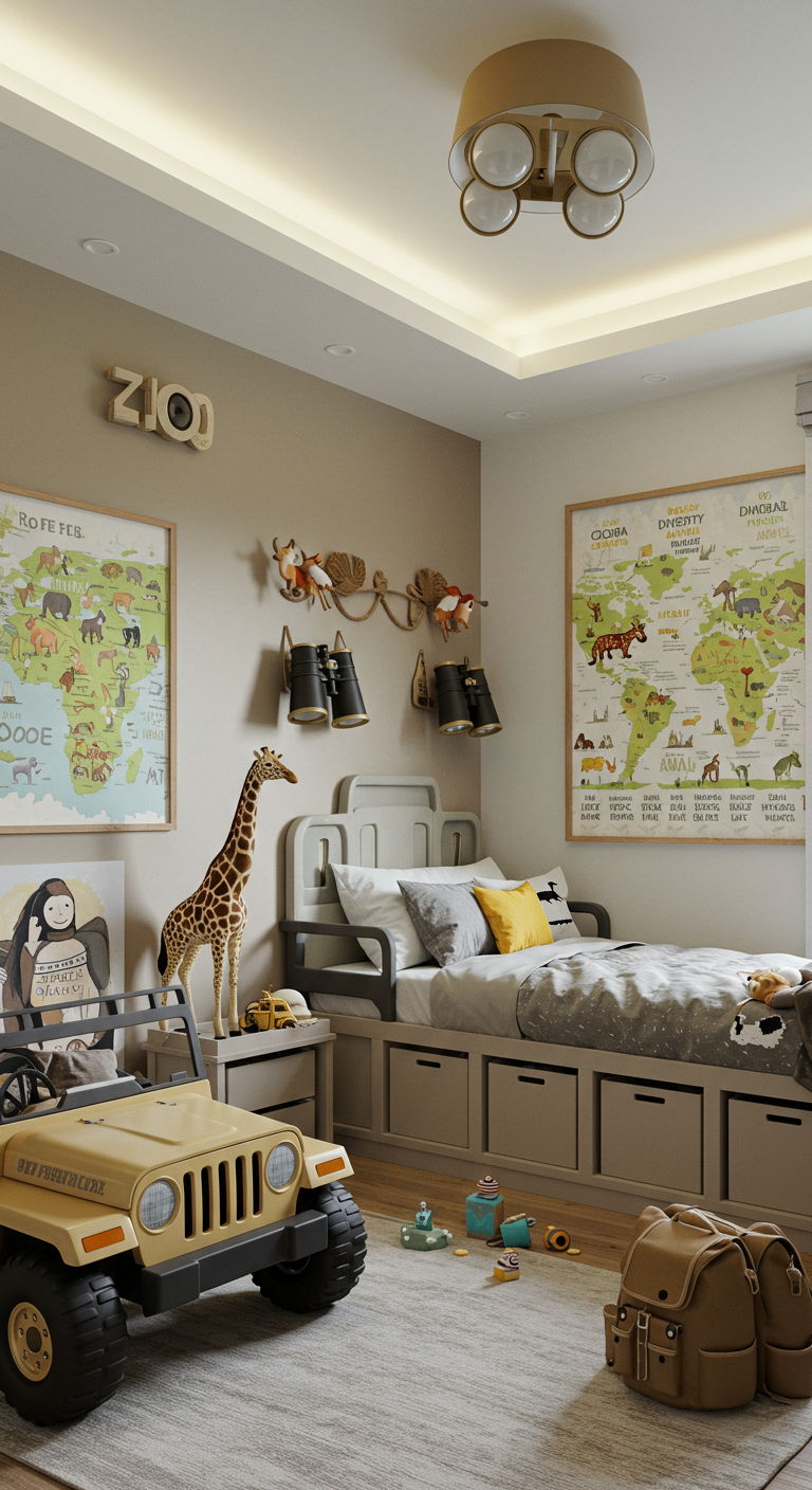 Plongez votre enfant dans l’univers fascinant de la savane africaine ! Cette thématique safari transforme la chambre en véritable terrain d’aventure.