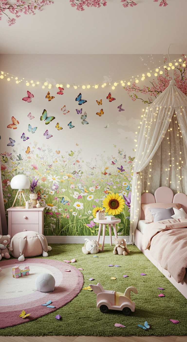 Transformez la chambre en jardin enchanté avec cette thématique papillons pleine de poésie.