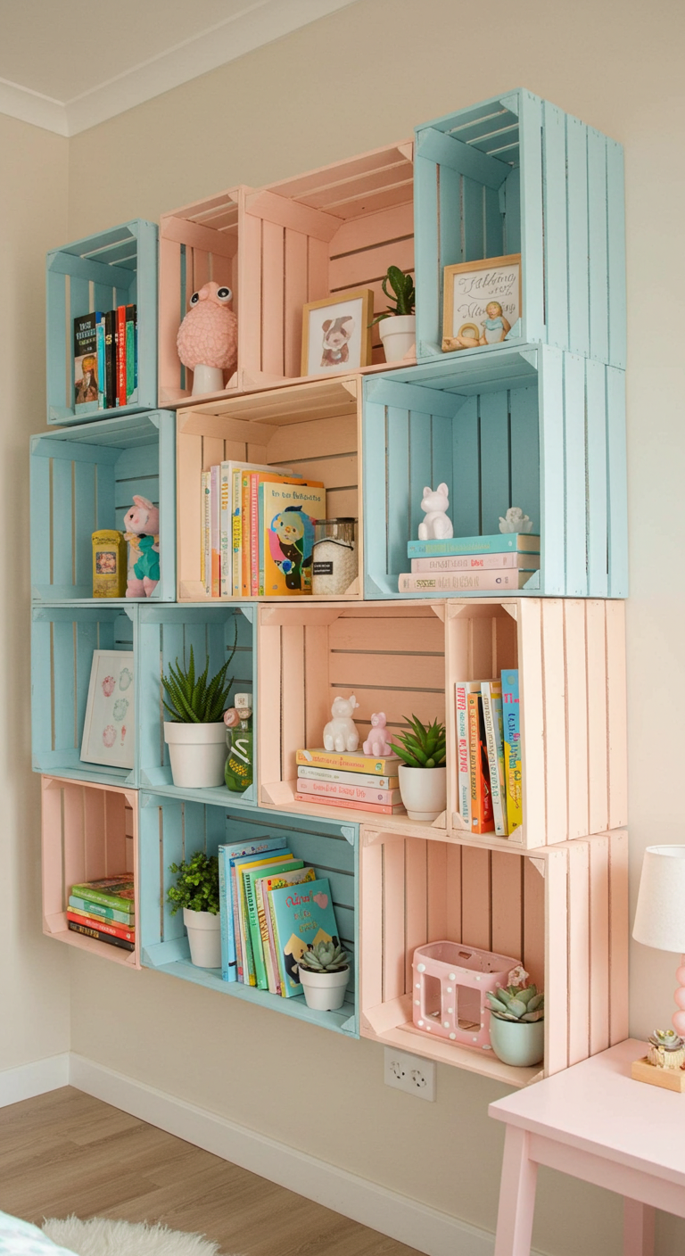 3. Système de Rangement Vertical DIY avec Caisses en Bois