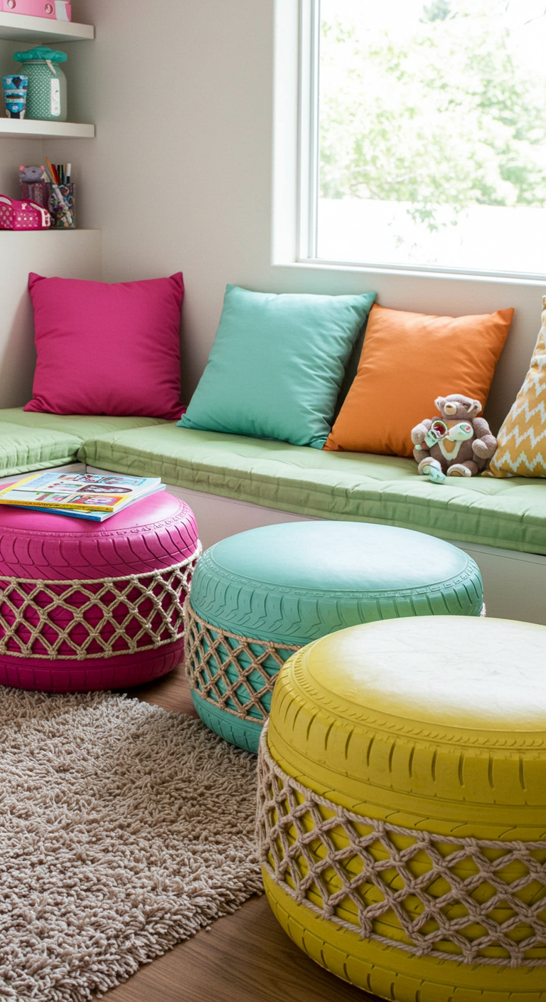 7. Coin Détente avec Poufs DIY en Pneus