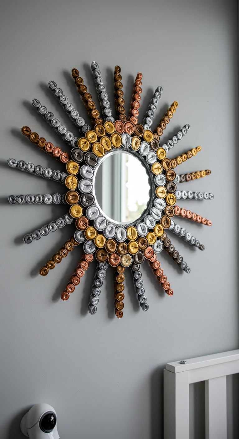 Transformez les capsules de café usagées en miroir décoratif éblouissant ! Cette création DIY unique apporte une touche glamour à petit prix tout en recyclant intelligemment.