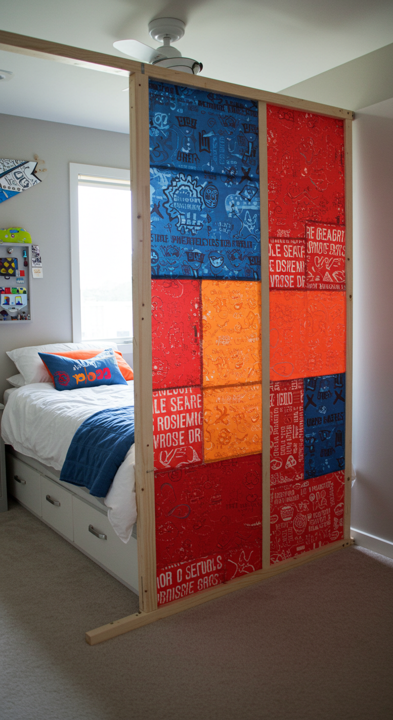 10. Paravent Séparateur en Tissus Colorés