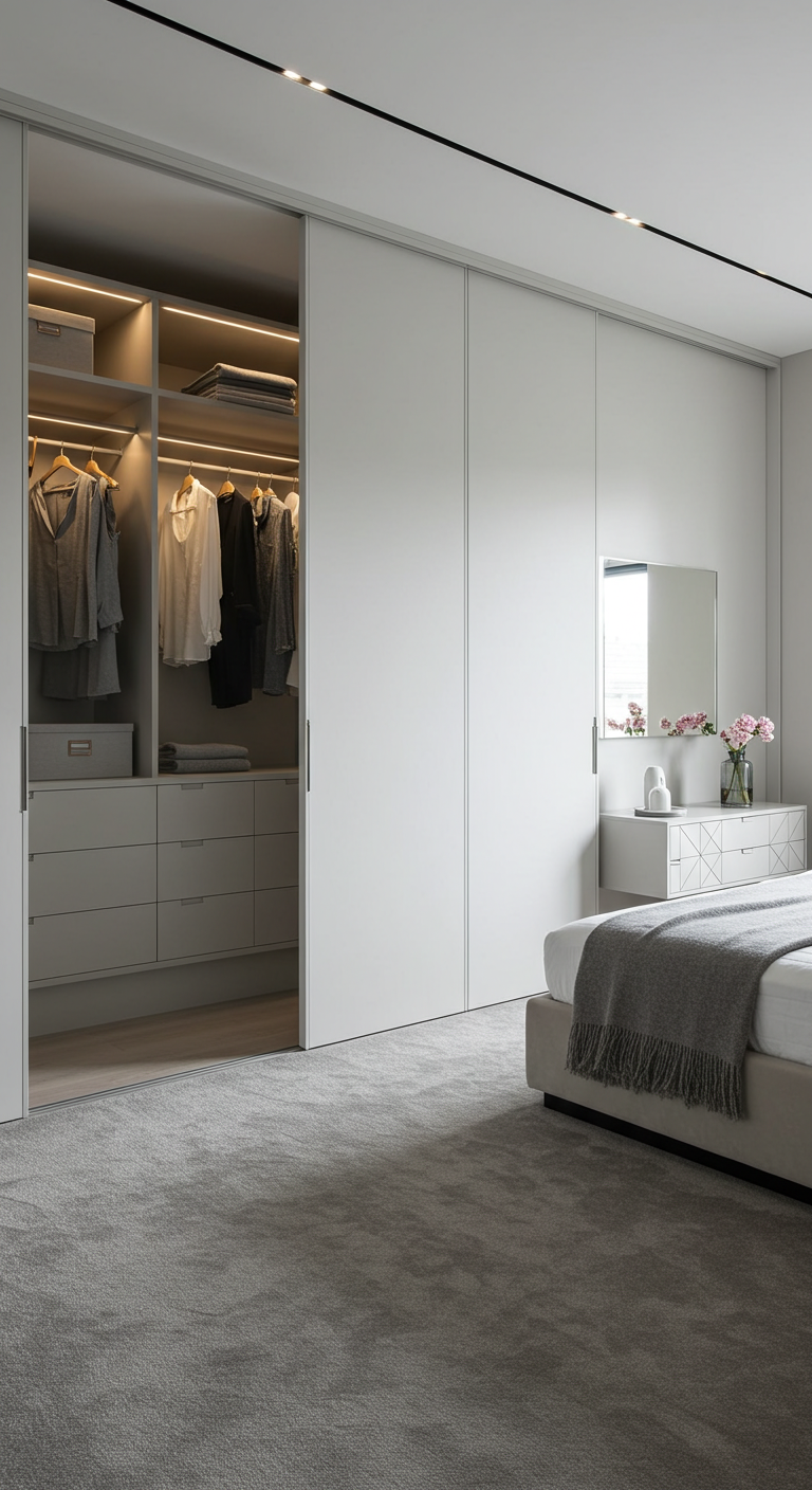 La suite parentale avec dressing intégré représente l’aboutissement du design fonctionnel moderne. Cette configuration optimise l’espace tout en créant une véritable expérience de luxe quotidien.