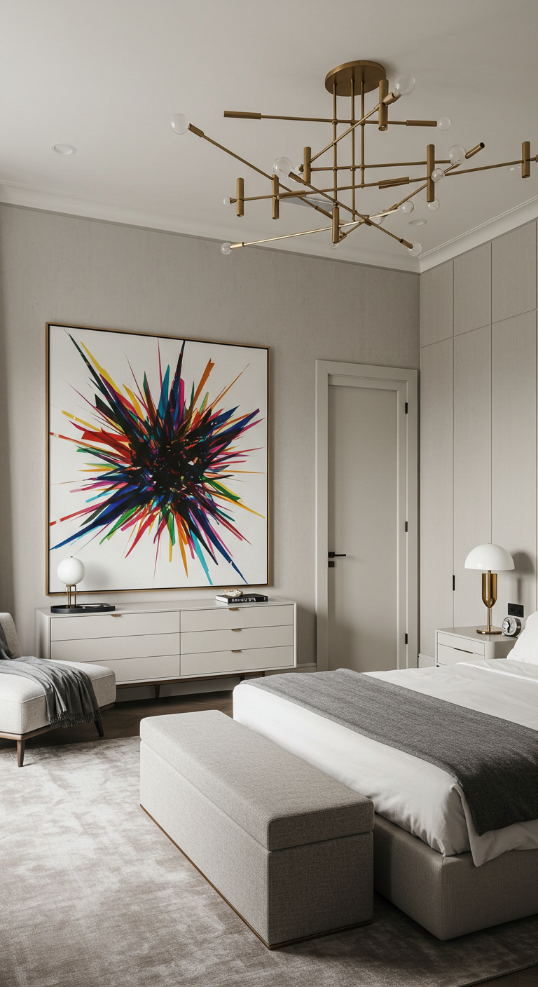 • Mobilier noir (lit, tables de chevet) pour créer des points d’ancrage