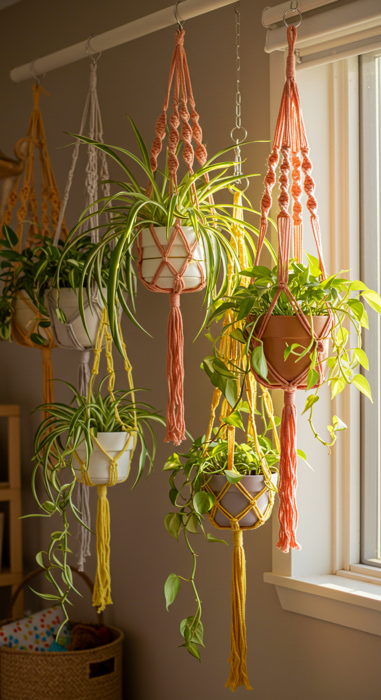 7. Plantes Suspendues dans des Cache-pots Colorés