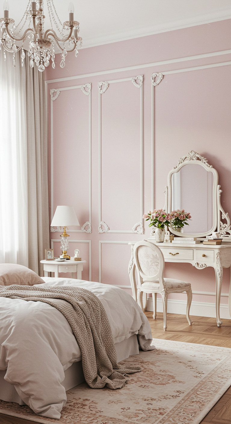 1. Mur d’Accent Rose Poudré avec Moulures Blanches