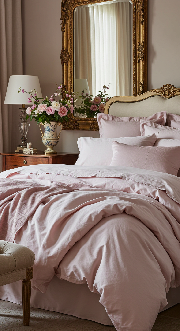 2. Linge de Lit Superposé en Nuances de Rose
