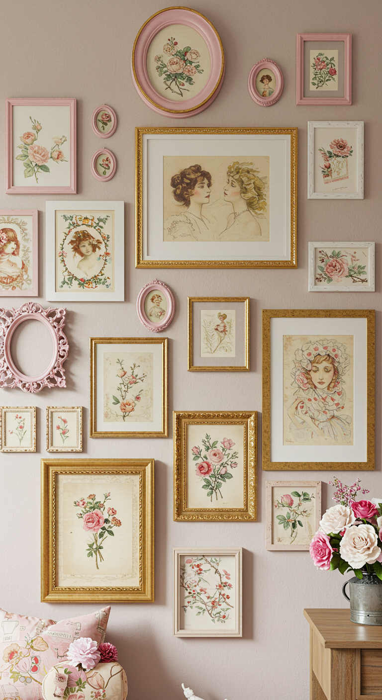 12. Galerie de Cadres Dorés et Rose