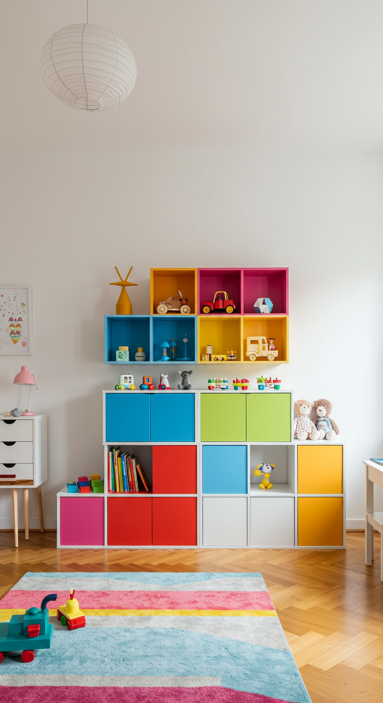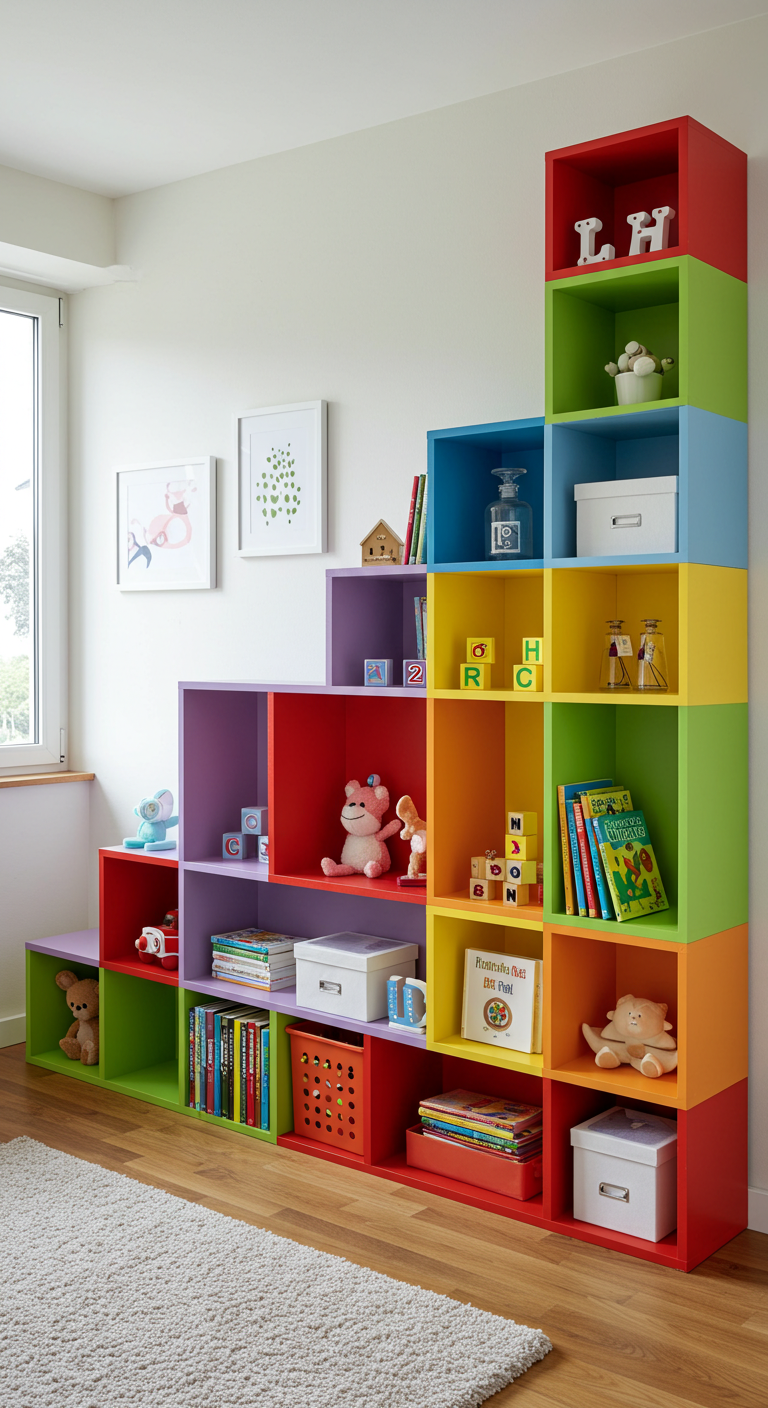 Le système de rangement cubique coloré transforme l’organisation en jeu. Chaque cube d’une couleur différente peut être assigné à un type d’objet spécifique.