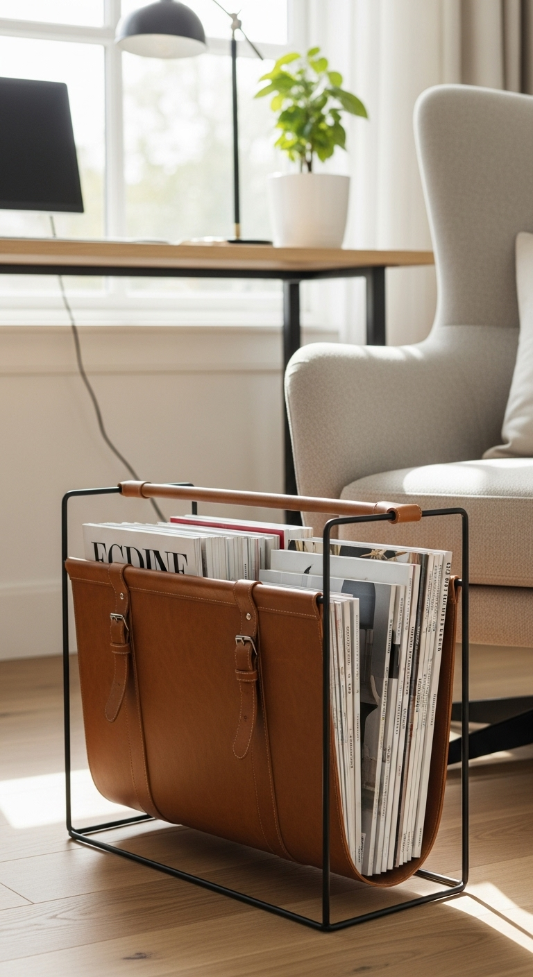 9. Porte-Revues en Cuir et Métal