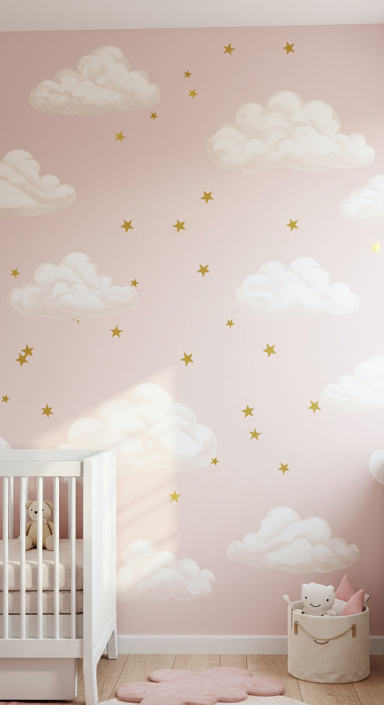 1. Le Mur Nuage Rose Poudré avec Étoiles Dorées
