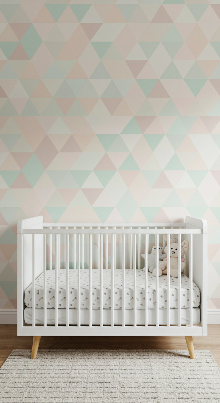 Optez pour un papier peint aux motifs géométriques dans des tons pastel ultra-doux. Les triangles, hexagones ou losanges dans des nuances de rose et vert menthe créent une ambiance moderne tout en restant apaisante. Limitez ce papier peint à un seul mur pour éviter la surcharge visuelle.