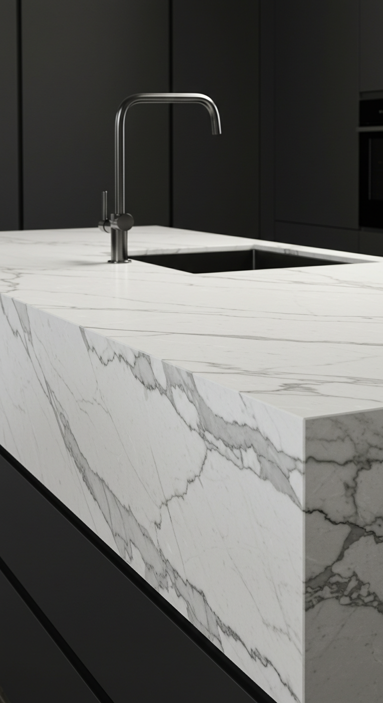 11. 🌊 Plan de Travail en Marbre Blanc Veiné
