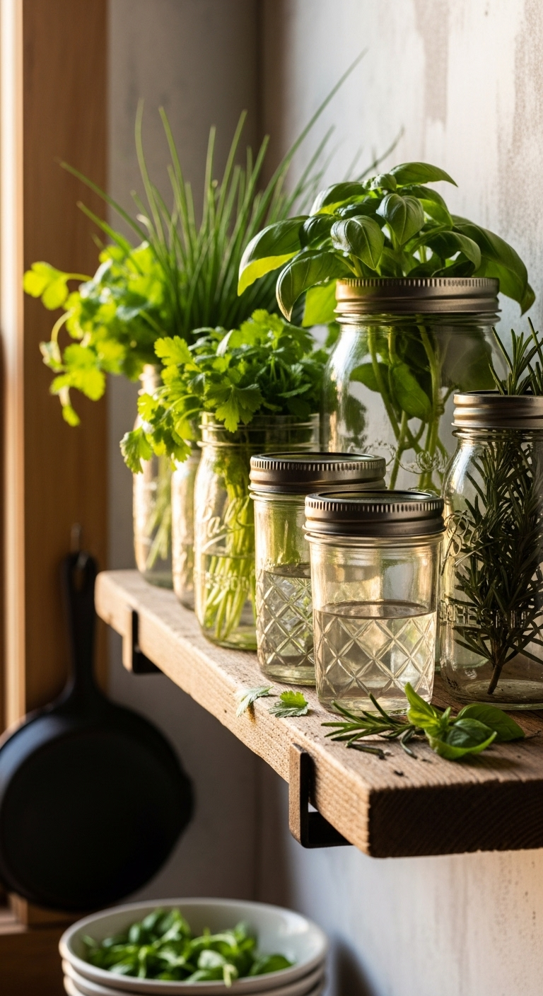 4. Les Bocaux Mason Jar Vintage avec Herbes