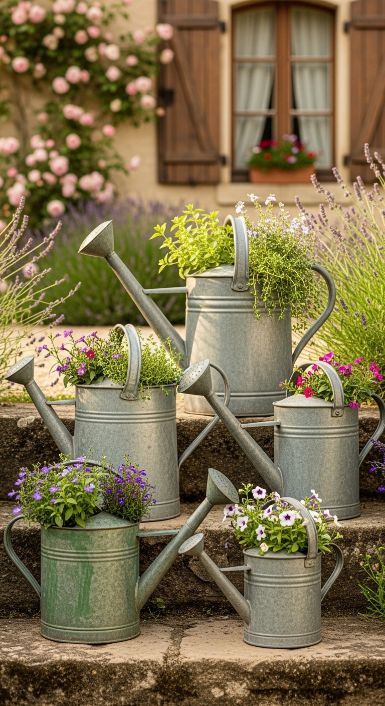 14. Les Arrosoirs en Zinc Vintage Plantés