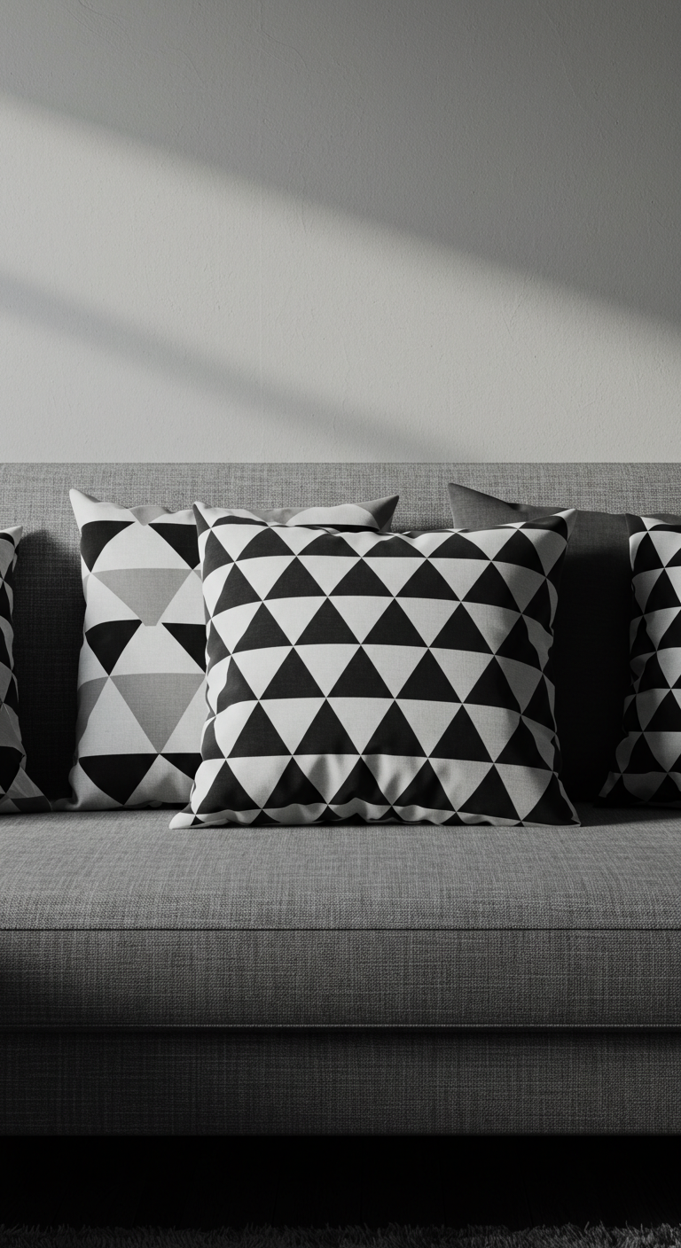 L’avantage de cette palette monochrome réside dans sa capacité à s’harmoniser avec n’importe quelle couleur d’accent. Vous pouvez facilement modifier l’ambiance de votre salon en ajoutant ou retirant simplement quelques coussins colorés. Pour un effet maximal, mélangez différentes tailles et textures tout en conservant la cohérence du motif géométrique. Le contraste fort attire l’œil et structure visuellement votre espace de vie.