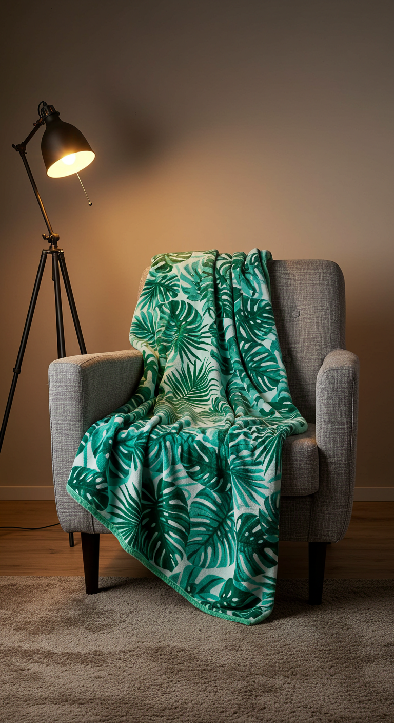Un plaid ou jeté de canapé aux motifs tropicaux est l’accessoire parfait pour ajouter confort et style simultanément. Ces textiles multifonctionnels servent à la fois d’élément décoratif et de couverture douillette pour les soirées fraîches.