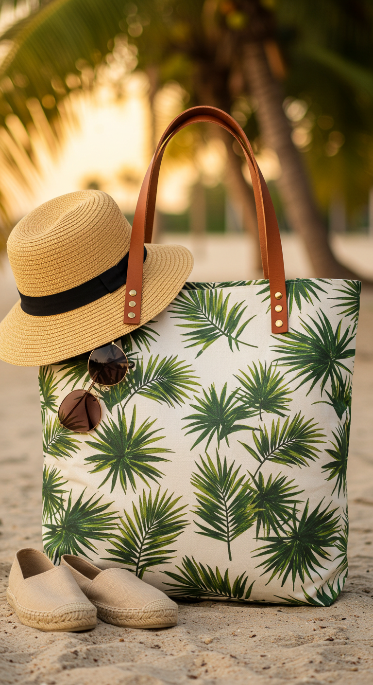 Recherchez des sacs en toile de coton robuste ou en canvas épais imprimé de palmiers, avec des détails de qualité comme des anses en cuir, des fermetures éclair solides et des poches intérieures. Les formats généreux (40×35 cm minimum) permettent de les utiliser comme sac de plage, cabas de courses, sac de sport ou fourre-tout pour le travail. Certains modèles incluent même une doublure imperméable pratique pour les tenues de bain mouillées.