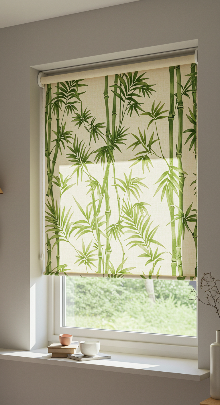 15. Stores Enrouleurs Tissu Imprimé Bambou et Palmiers