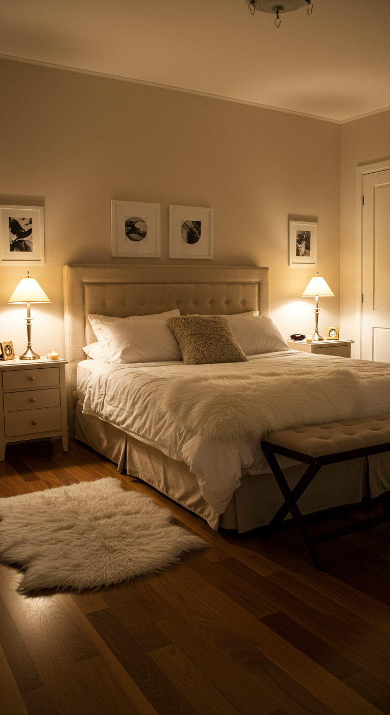 Combinez toujours plusieurs sources lumineuses : éclairage général tamisé, éclairage d’ambiance (bougies, guirlandes) et éclairage fonctionnel (lecture). Cette approche multicouche vous offre une flexibilité totale.