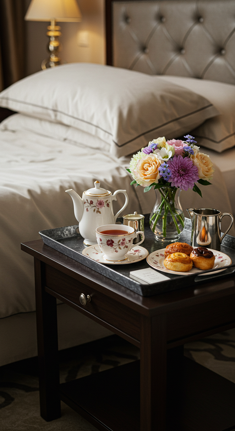 Préparez un plateau petit-déjeuner élégant avec de la belle vaisselle, un petit bouquet de fleurs et vos mets favoris. Ce rituel romantique transforme votre lit en table d’exception et crée des moments privilégiés. Investissez dans un joli plateau en bois ou en rotin et de la vaisselle raffinée pour sublimer ces instants de complicité matinale.