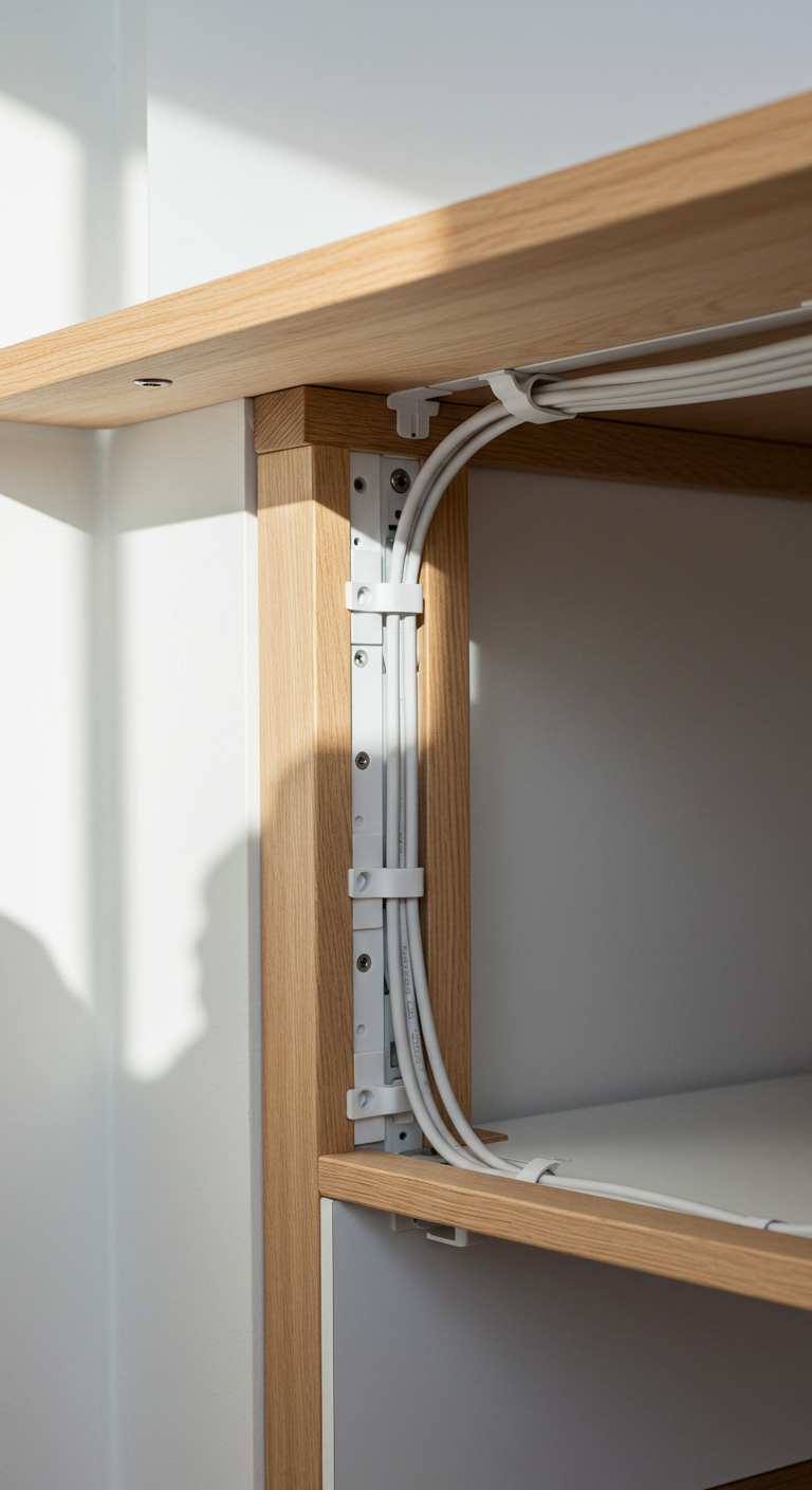 Pourquoi ça fonctionne : Les câbles visibles créent du chaos visuel qui perturbe la concentration et génère du stress inconscient. Un système de câbles organisé libère l’esprit et maintient l’esthétique épurée essentielle au style scandinave. Cela facilite également le nettoyage et la maintenance.