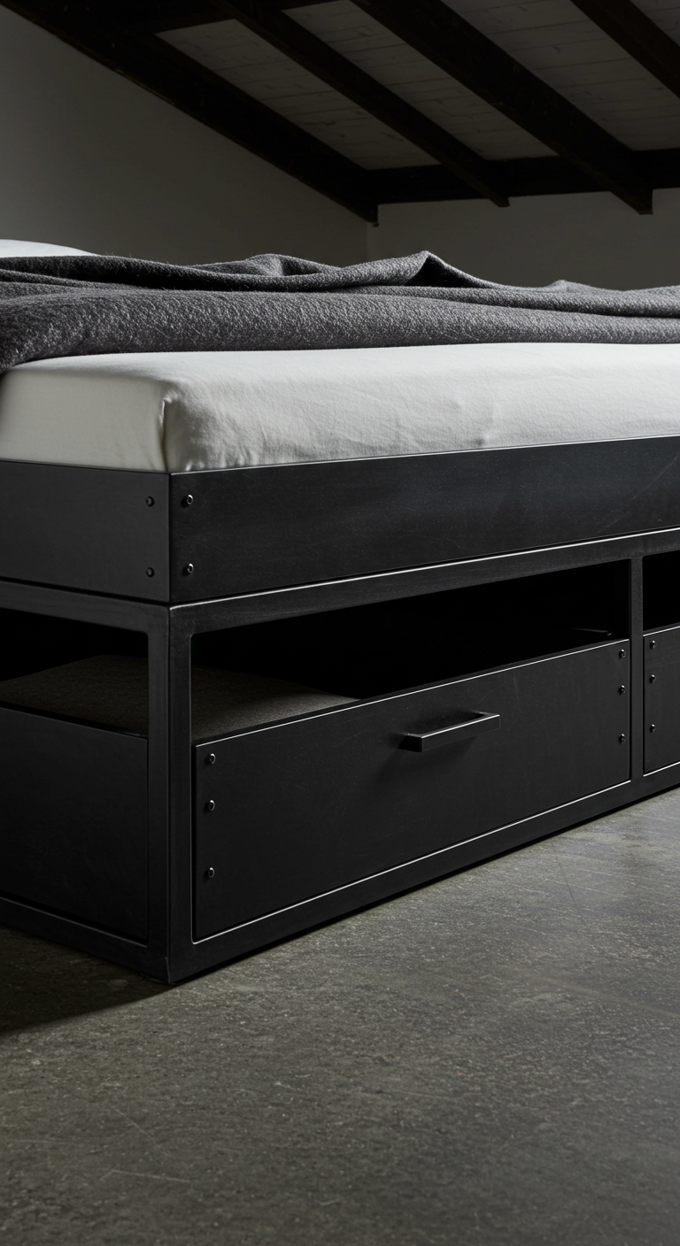 2. Lit Plateforme en Métal Noir avec Rangements Intégrés