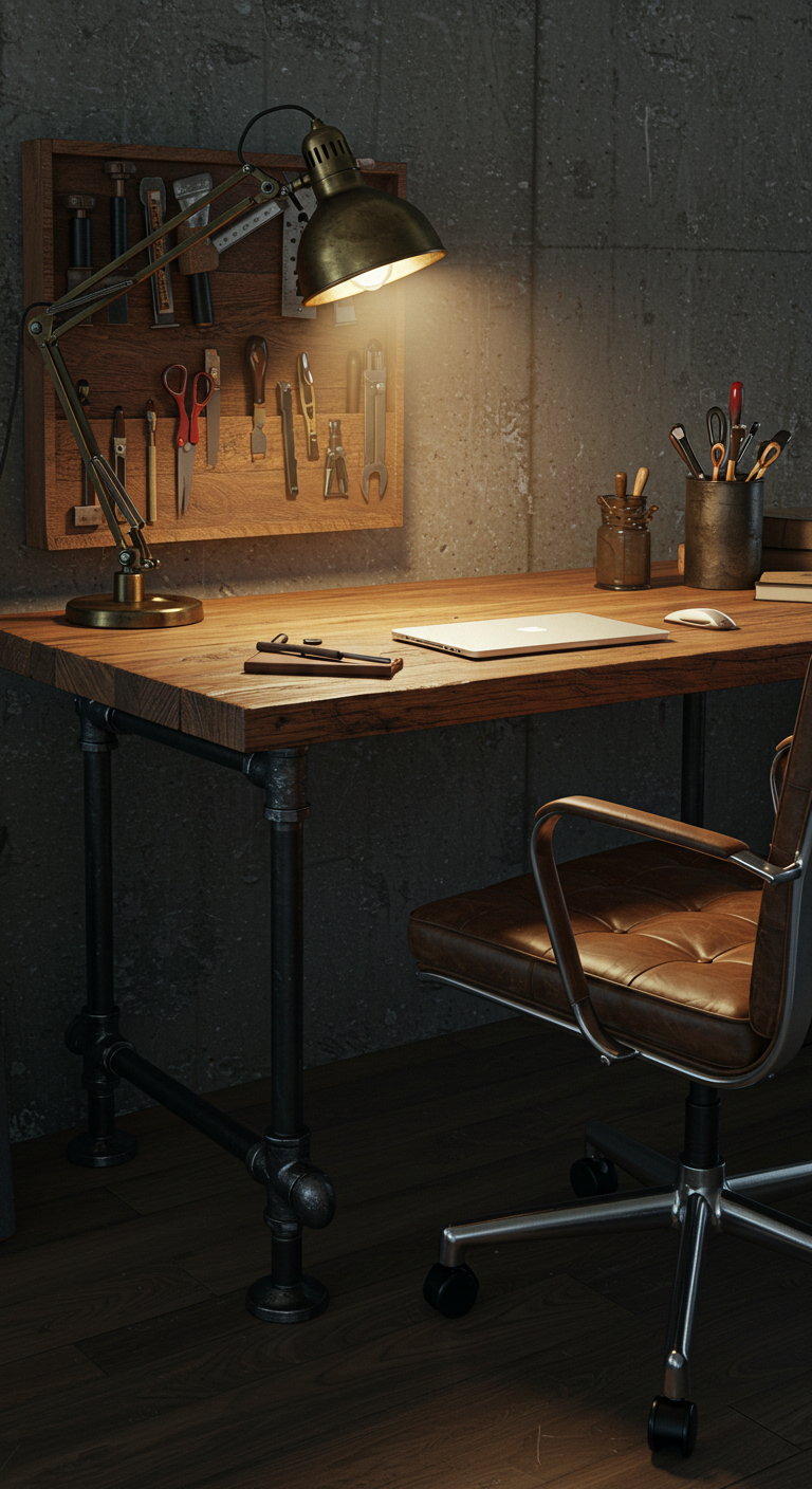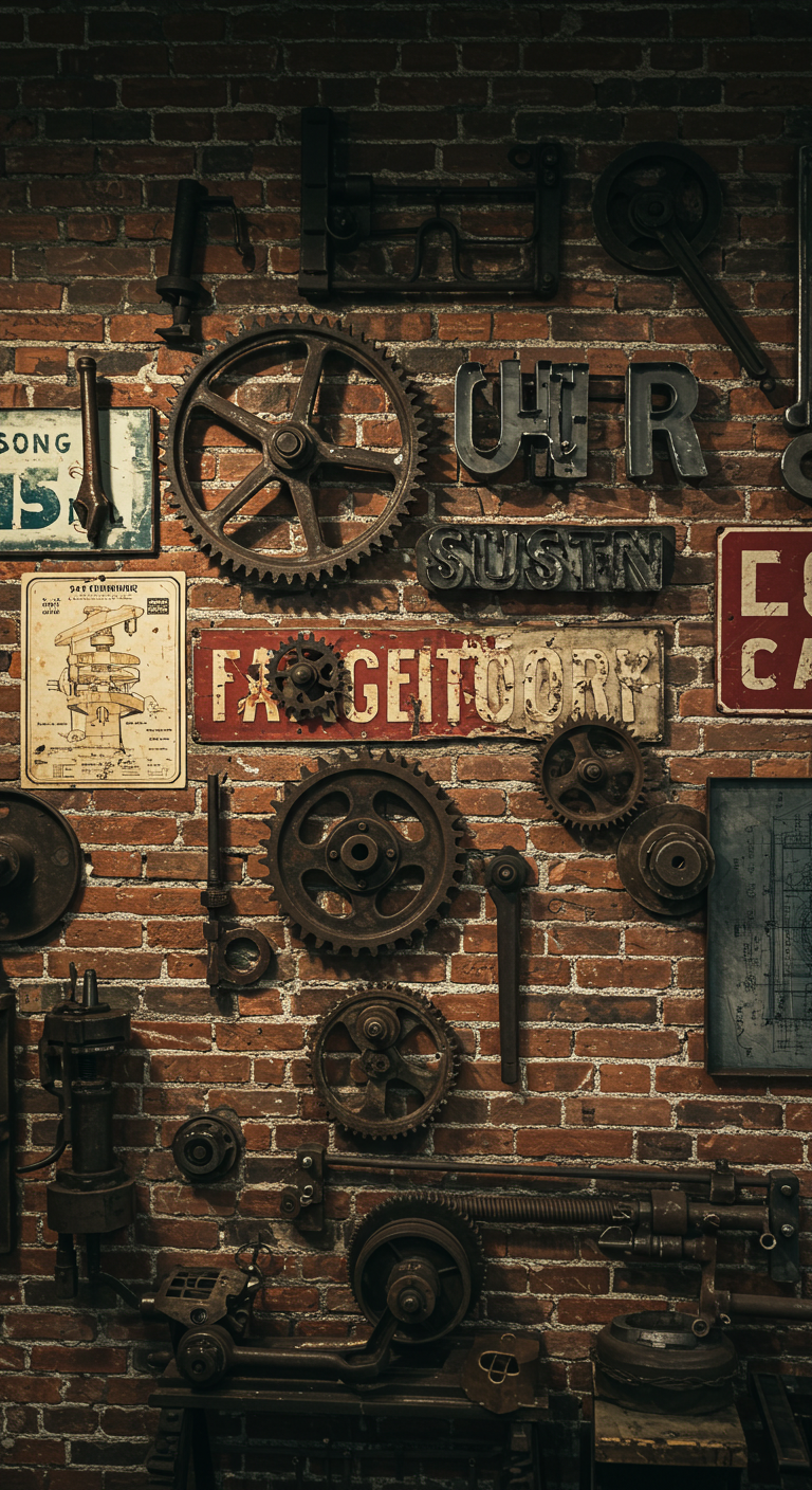 Les objets industriels vintage offrent une palette décorative riche : anciens outils, engrenages, plaques émaillées, typographies métalliques, plans techniques, ou instruments de mesure. Chaque élément choisi doit raconter une histoire et contribuer à la narration industrielle de l’espace.