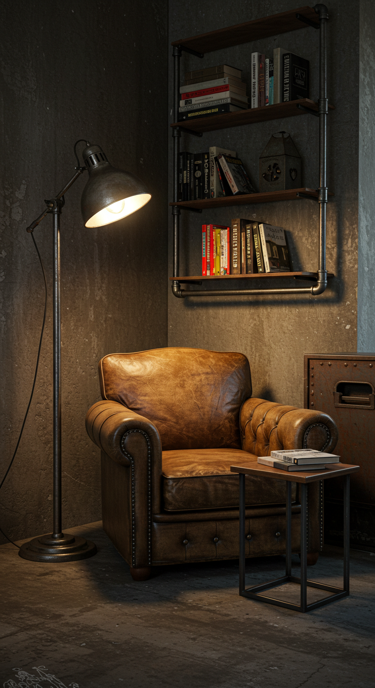 L’éclairage de lecture, assuré par un lampadaire industriel ajustable, permet de moduler l’intensité selon les besoins. Les modèles articulés ou télescopiques offrent une fonctionnalité optimale tout en conservant l’esthétique industrielle.