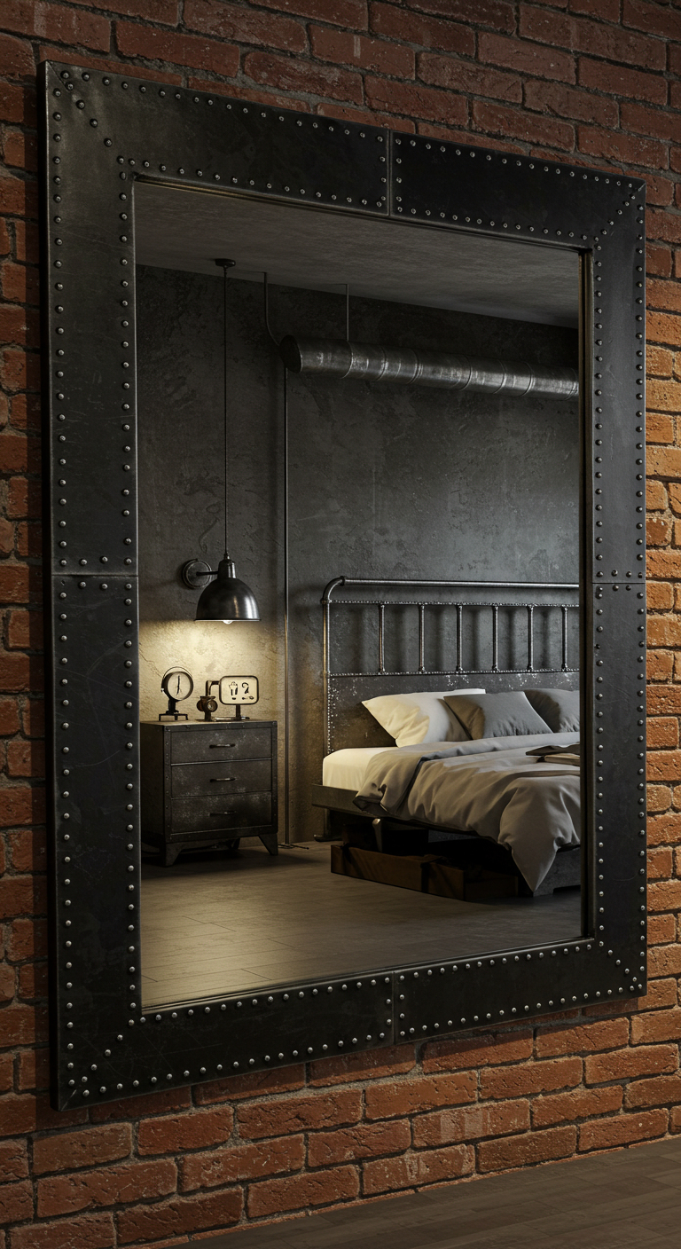 16. Miroir Industriel à Cadre Métallique Rivé
