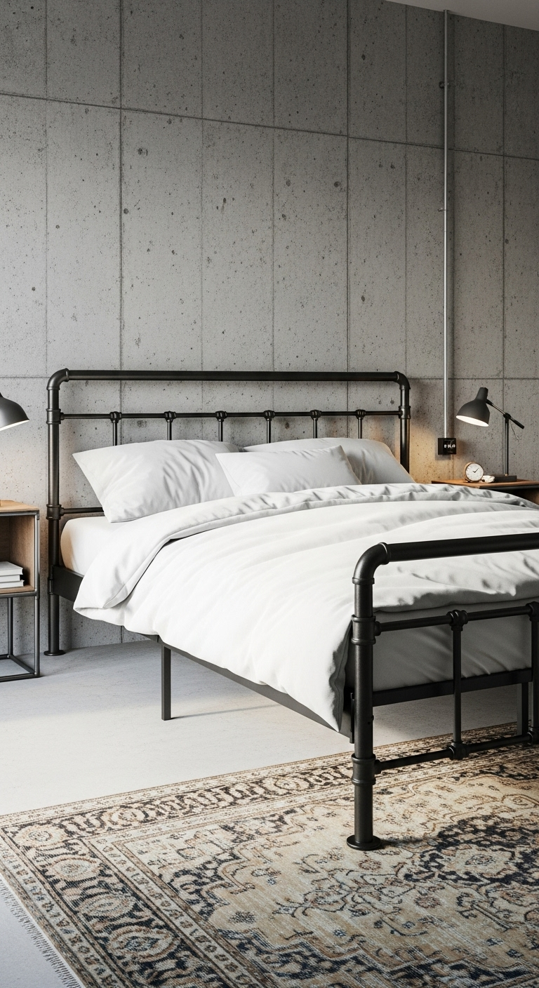 Choisissez un modèle avec des lignes épurées ou des détails inspirés des tuyaux industriels pour une authenticité maximale. Le noir mat se marie magnifiquement avec du linge de lit blanc ou gris clair, créant un contraste apaisant et sophistiqué. Ajoutez des coussins texturés en lin ou en velours pour adoucir l’ensemble. Les cadres de lit industriels en noir mat sont généralement très durables et faciles à entretenir. Complétez le look avec des tables de chevet en bois récupéré et des lampes industrielles pour une cohérence totale dans votre sanctuaire de repos.