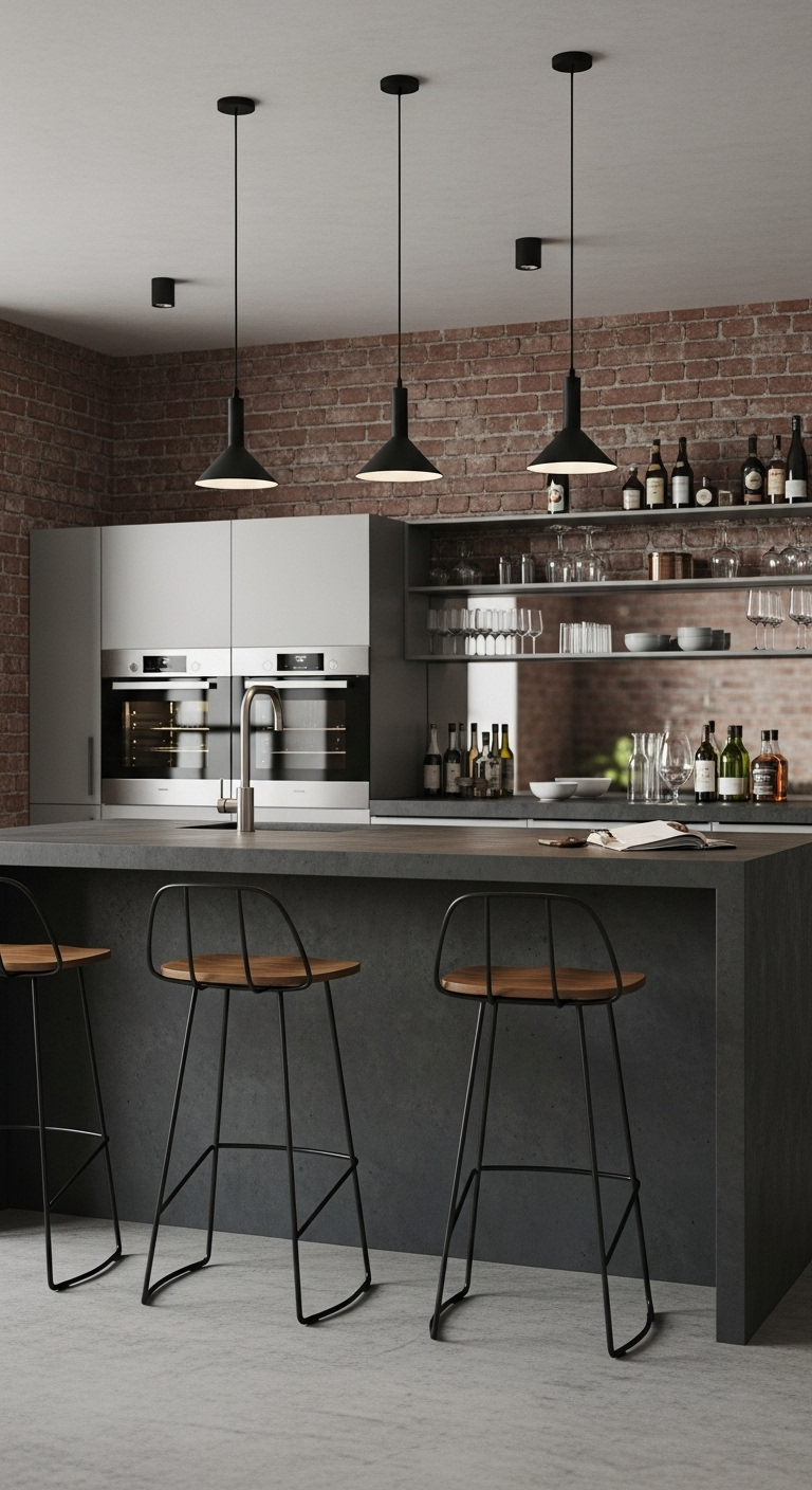 1. Cuisine Industrielle avec Armoires Noir Mat