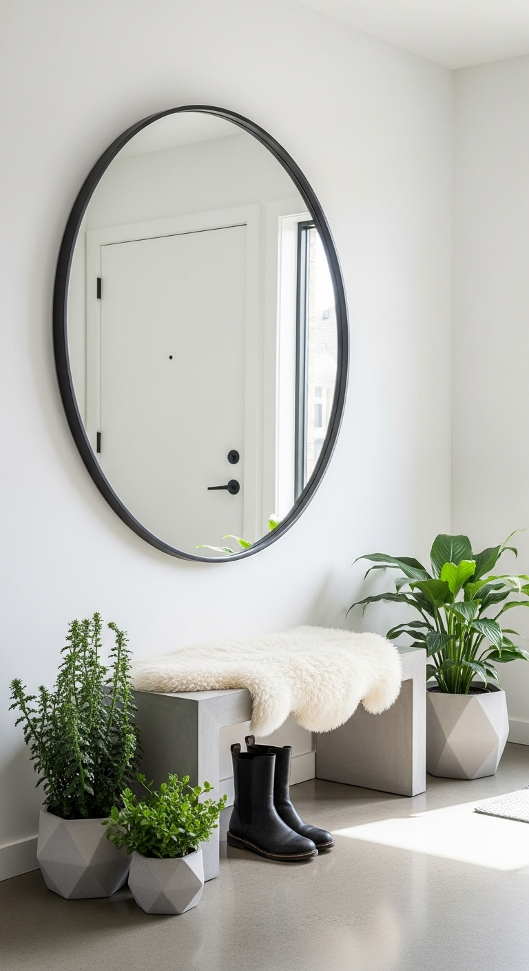 Les miroirs industriels se déclinent en diverses formes : ronds inspirés des hublots, rectangulaires avec détails rivés, ou fenêtres à carreaux multiples. Le cadre en métal noir mat ajoute du poids visuel et de la structure à votre mur. Placez un grand miroir dans l’entrée pour accueillir vos invités avec style, dans la chambre pour créer un coin habillage, ou dans le salon pour réfléchir la lumière naturelle. Les miroirs de style verrière avec divisions géométriques sont particulièrement populaires. Appuyez un grand miroir contre le mur pour un look décontracté, ou accrochez-le solidement comme point focal. Le reflet multipliera visuellement vos autres éléments décoratifs noirs.