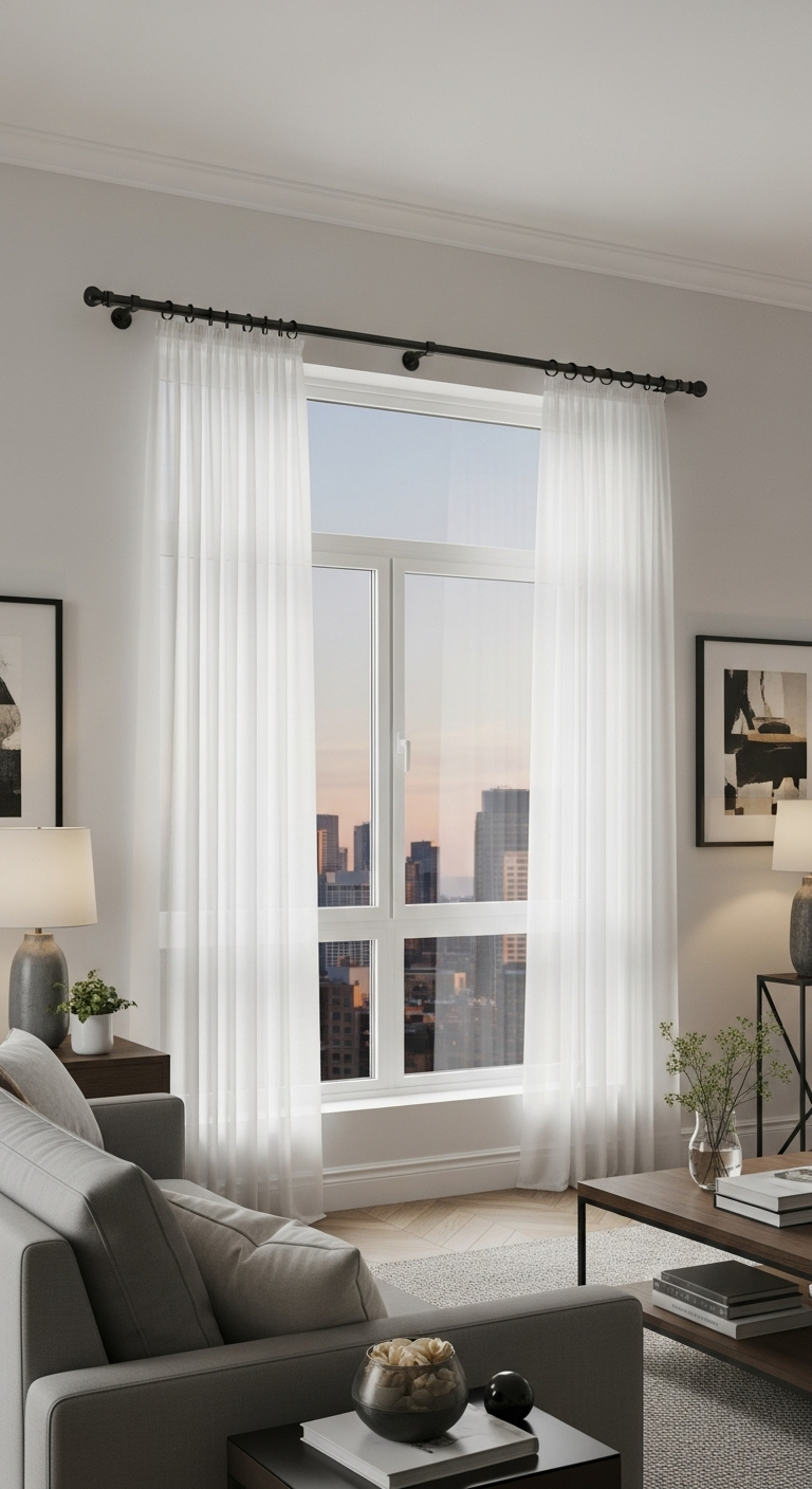 Optez pour des tringles en métal épais avec des embouts simples ou des détails géométriques. Les supports muraux apparents en noir mat renforcent l’esthétique industrielle. Ces tringles robustes supportent facilement des rideaux lourds en velours, lin épais ou laine. La finition mate crée une continuité visuelle avec vos autres éléments métalliques noirs. Installez-les quelques centimètres au-dessus du cadre de fenêtre pour donner une impression de hauteur supplémentaire. Associez-les à des rideaux dans des tons neutres ou même à des voilages blancs pour un contraste saisissant. Cette attention aux détails démontre une approche réfléchie de la décoration globale.