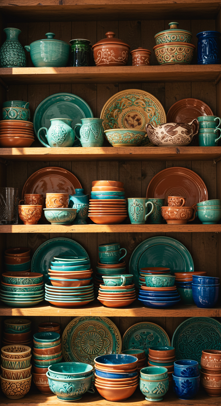 Votre vaisselle devient décoration ! Exposez fièrement vos pièces artisanales : assiettes en grès émaillé, bols en terre cuite, verres soufflés aux teintes irisées. Cette vaisselle d’exception transforme chaque repas en moment d’art de vivre.